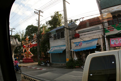 intricately decorated temples stand next to dusty shacks next to bustling night markets next to serene groves of trees next to giant shopping malls